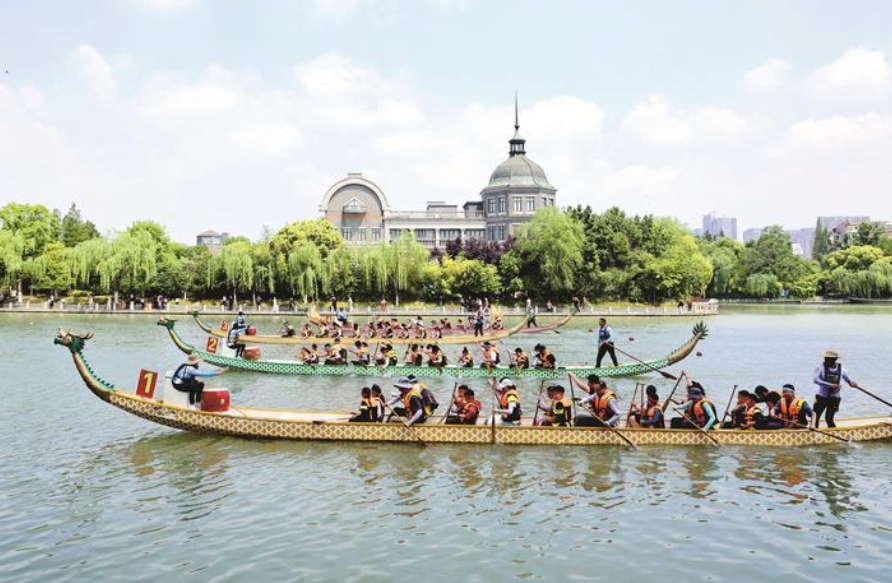 昨天,由南通江海小记者总站和南通行千里体育文化发展有限公司主办的“环濠河亲子龙舟赛”在濠河风景区鸣鼓开赛,参赛选手们通过环濠河5公里绕圈追逐赛、300米直道竞速赛一起奋楫逐浪,在假期里沉浸式体验非遗,感受体育运动的魅力。记者徐培钦 实习生贾冯翔