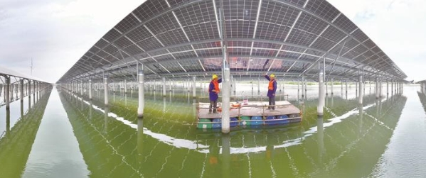 昨天拍摄的如东凌洋农场渔光互补光伏发电项目一标段。该项目由中建三局总承包公司承建,是全市最大单体“渔光互补”光伏项目,于近日全容量并网发电。