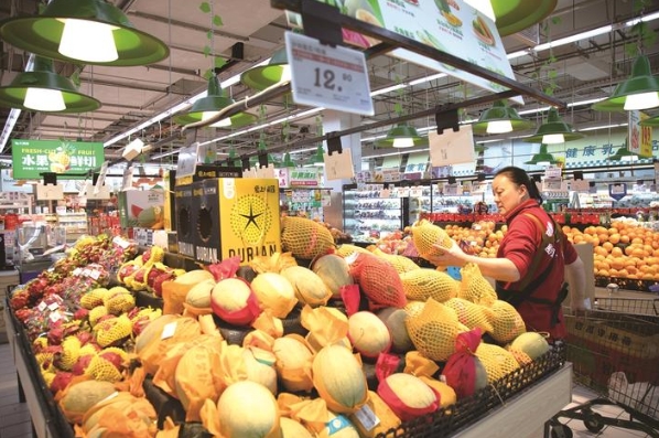 当下正值夏季时令瓜果成熟上市的时节。记者昨天走进市区某大型连锁超市,西瓜、香瓜、芒果、菠萝等水果整齐摆放在显眼位置。这些瓜果色泽鲜艳,散发着诱人的香气,吸引了不少市民采购。 记者黄哲