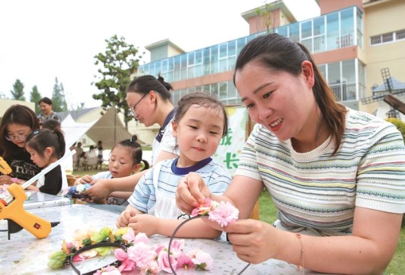 5月15日,国际家庭日。当天,如皋市吴窑镇妇联联合吴窑幼儿园开展“亲子学手工”活动,通过制作簪花手工艺品,共享亲子美好时光。CFP