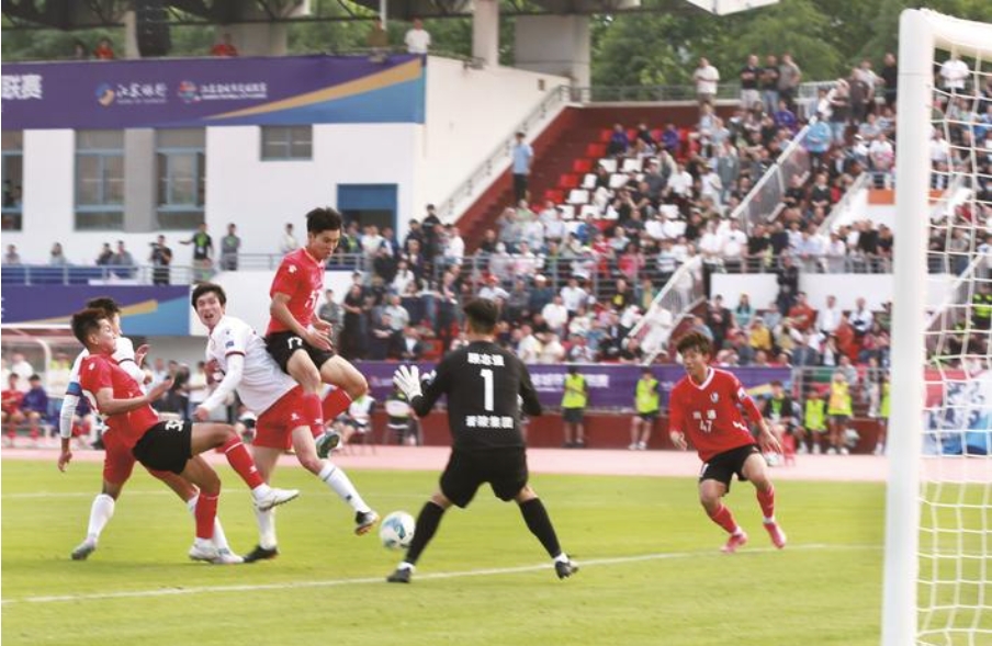 本网讯 昨日15:30,2025年江苏省城市足球联赛第二轮,南通队对阵常州队的比赛在南通大学西操场鸣哨。最终,南通队以2∶0战胜常州队,取得联赛的两连胜(上图 李波摄)。本场比赛有1721名球迷到场支持,加油呐喊声响彻球场。