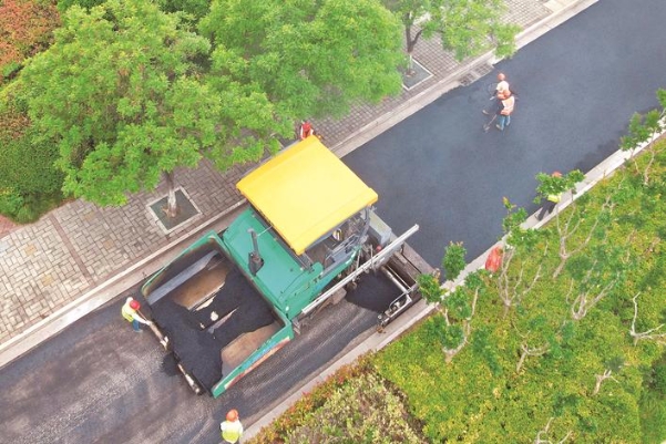 24日,市政养护工人正在对如皋市海阳路非机动车道沥青路面进行修补施工。随着气温逐渐升高,沥青路面修补进入适宜施工期。如皋市全面启动对城区破损沥青路面修补施工,采取分段作业、随挖随补的方法,及时消除道路安全隐患。 吴树建摄