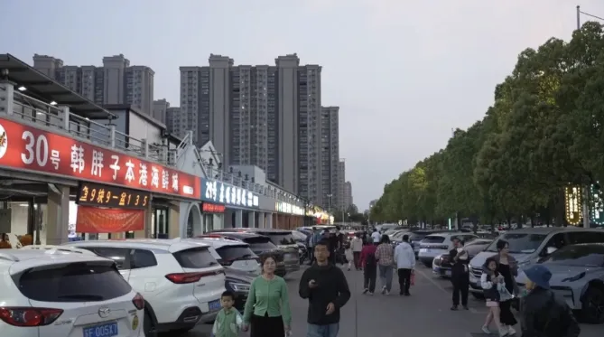 每当华灯初上时,位于华山路的海鲜美食街就变得热闹非凡,道路两侧的餐饮店铺内飘出的鲜香交织成独特的市井烟火气。