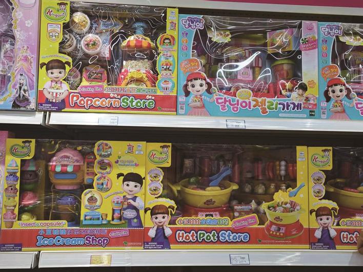 走进崇川区圆融广场玩具反斗城,记者看到货架上摆放着多款仿真厨具玩具,其中,包括售价179元的迷你厨房套装、269元的小豆娃娃模拟冰淇淋店玩具以及349元的模拟爆米花店玩具。然而,店内没有儿童厨房“真煮”玩具。