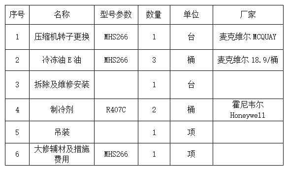 项目名称:报业大厦主楼风冷螺杆机组压缩机维修项目