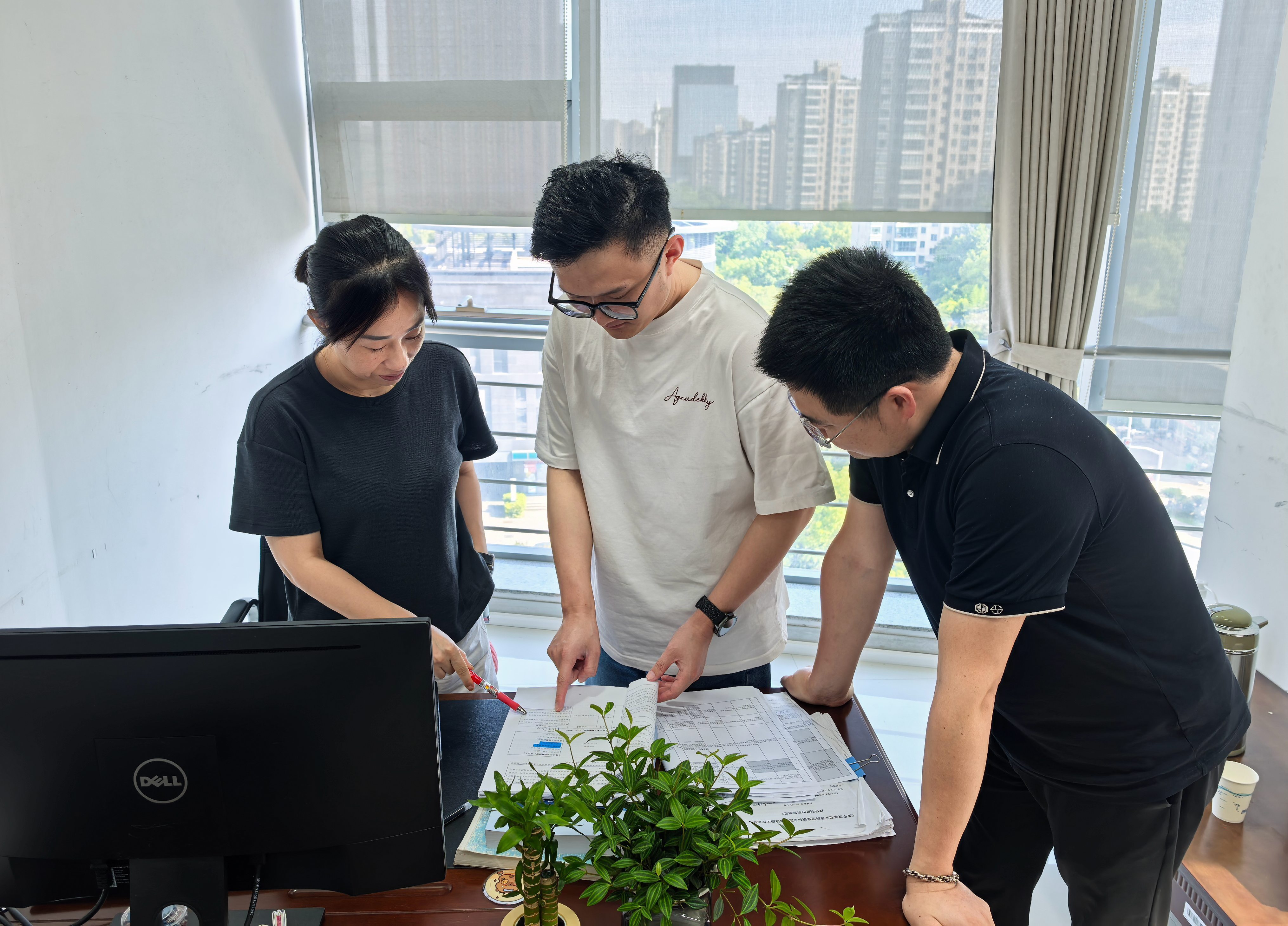 为优化营商环境、减少检查频次,南通市造价处打破内部专业壁垒,融合招投标管理科、造价管理科的业务职能,联合开展“综合查一次”行动。在会议室里,两科室的业务人员围坐一起,针对项目文件,从招投标与造价双维度展开热烈讨论。