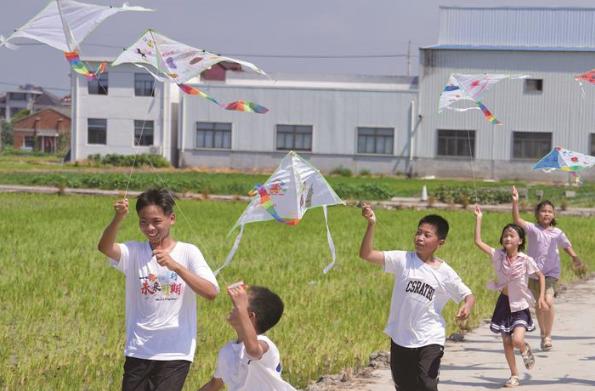 昨天,海安市墩头镇千步村爱心暑托班组织小学生放飞自绘的风筝,让他们体验户外活动的乐趣,感受传统文化的魅力,丰富暑期生活。 周强摄