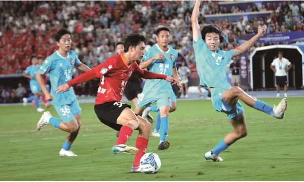 19时35分,随着裁判员的一声哨响,在现场26383名观众的摇旗呐喊中,两支球队拉开架势展开激烈角逐。上半场,南通队占据主动并控制了场上节奏,多次在盐城队门前发起有威胁的攻势。但盐城队凭借顽强的防守,力保球门不失。上半场结束时,双方互交白卷。