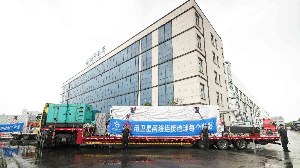 从银河航天南通卫星智慧工厂运出的卫星即将送往发射点。银河航天供图