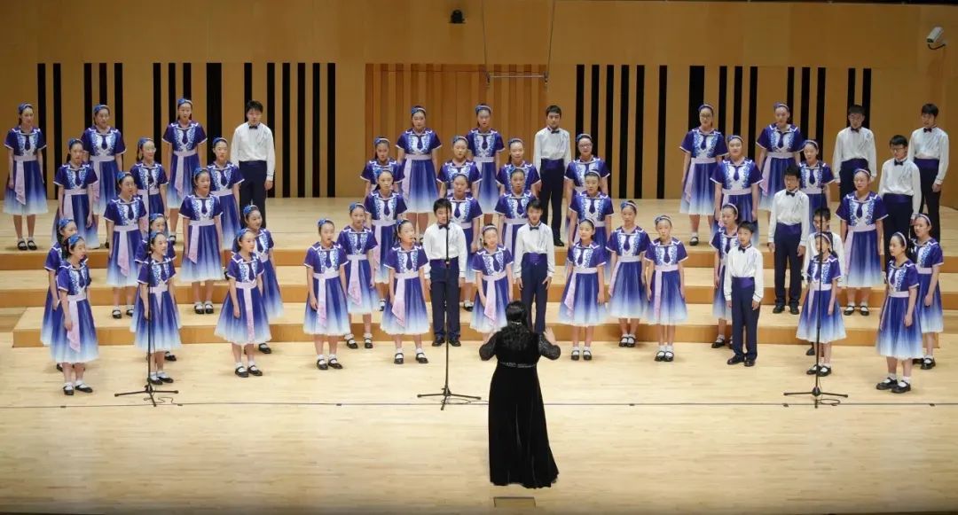 舞台灯光渐暗,清澈童声渐起。广州小海燕合唱团、上海市杨浦区少年宫合唱团、西安市小鸿雁合唱团、香港中西区儿童合唱团、苏州市吴韵少年艺术团合唱团以及北京爱乐合唱团依次登台。展演的曲目民族元素丰富,彝语填词的《山之女》以清亮和声复刻山间对唱;土家族民歌的《咚咚喹》用明快节奏将土家人的质朴与活力展现得淋漓尽致。多首歌曲由诗词改编,展现诗乐融合之美,《山居秋暝》用“空山新雨后”的唐诗意境搭配细腻声部处理,让江南烟雨的朦胧感在音符中流淌;《四时田园》以清澈声线诠释范成大“童孙未解供耕织,也傍桑阴学种瓜”的烂漫;《不会来了》改编自顾城的《小鱼》,柔美灵动的歌声宛若水中游弋的小鱼。中文、英语、匈牙利语等不同语言的演唱传递出中西文化共通的情感共鸣,《坚守你的梦想》深情地唱出对梦想的坚定信念,《我爱你中国》用磅礴的赤子情怀感染全场。