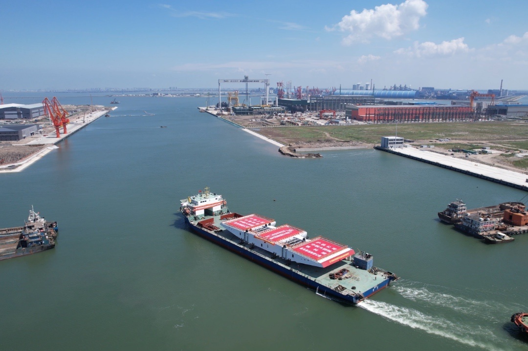 7月13日,载有甬舟铁路西堠门公铁两用大桥金塘岛侧首段1100吨钢箱梁的“海德利”轮缓缓驶离中铁四局通州湾智能制造基地码头,标志着这座目前世界桥梁建设领域控制因素最复杂、工程技术难度最大的超级跨海大桥全面进入主体结构安装施工阶段。这不仅彰显了通州湾高端装备制造的实力,更为区域海工装备产业集群发展提供了新支撑。