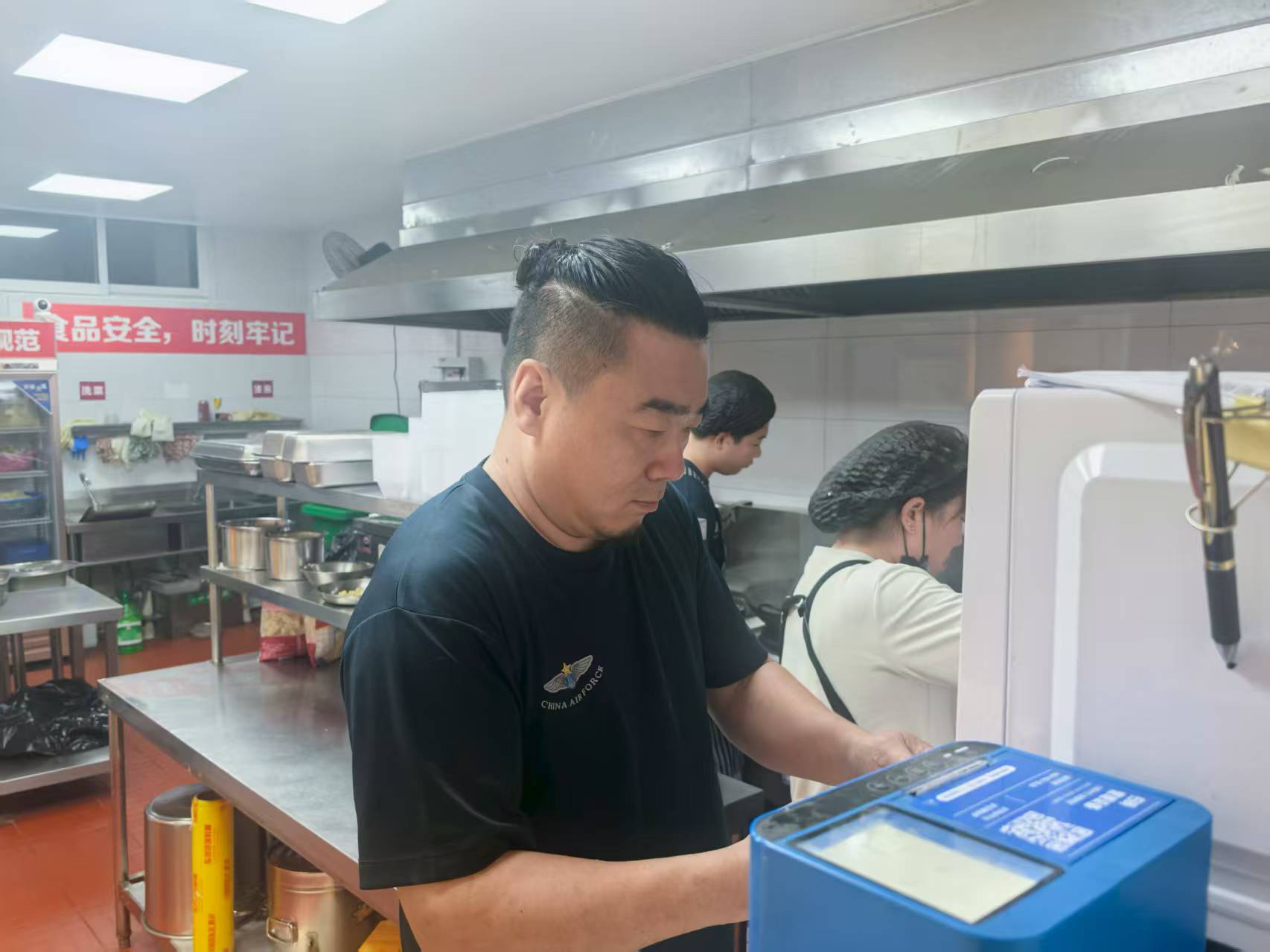退伍后,他深耕餐饮业。疫情期间,他的饭店每天要为街道提供数百份快餐。因饭菜可口、干净卫生,去年学田街道在南川园附近开设社区食堂,选择了杨波。