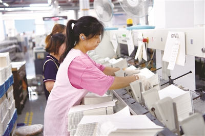 顶部新学期临近,昨日,承接部分江苏省和南通市中小学教材教辅900万余册印刷任务的南通韬奋印刷有限公司员工正全力进行教辅材料印刷工作,确保在开学之际能够“课前到书,人手一册”。 记者 徐培钦摄