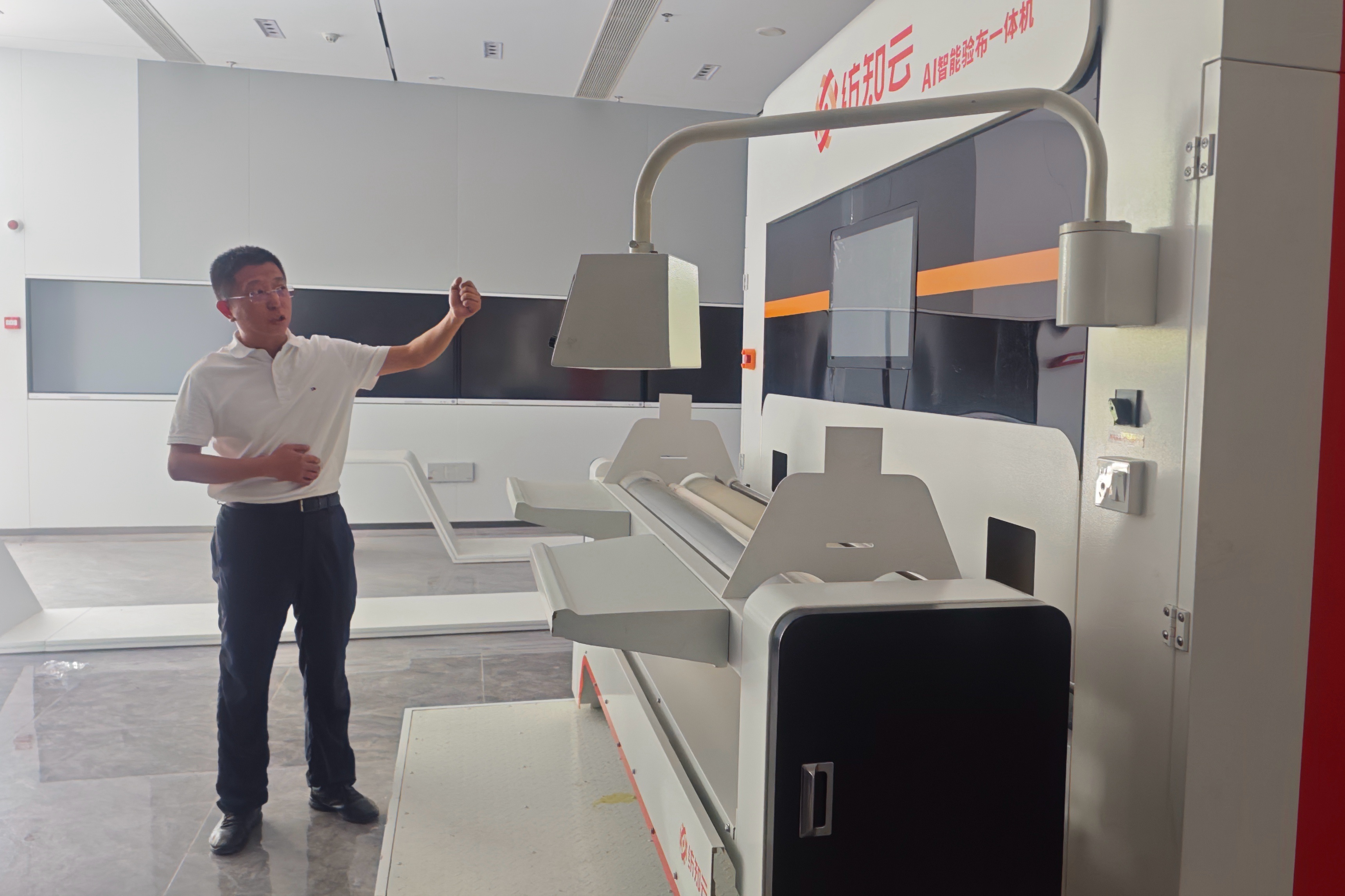 除设计环节外,“纺知云”还研发出软硬件结合的AI智能验布一体机:布料经过机器时,可自动检测瑕疵同时进行记录,并形成数字化报告,供工人复检。陈旭说:“人工验布效率低,出错率还高,但凡有些瑕疵检测不出来,后续生产成本就会增加。AI智能验布一体机24小时工作,效率和准确率都大大提高。”