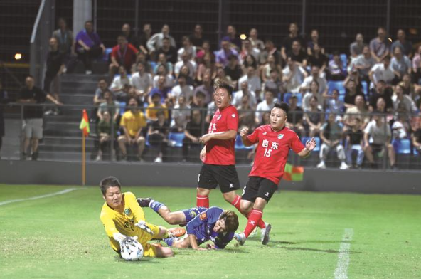 昨天,启东队守门员急扑海安队射门。当天,2025年南通市秋季业余足球联赛小组赛第二轮四场比赛在南通长江体育公园足球片区举行,八支球队捉对厮杀。最终,如皋队8∶0大胜通州湾示范区队,海门队6∶0轻取苏锡通园区队,崇川队4∶2战胜通州队,海安队5∶2战胜启东队。