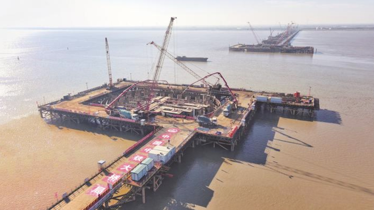 崇启公铁长江大桥双主塔同时完成上游侧26节浇筑