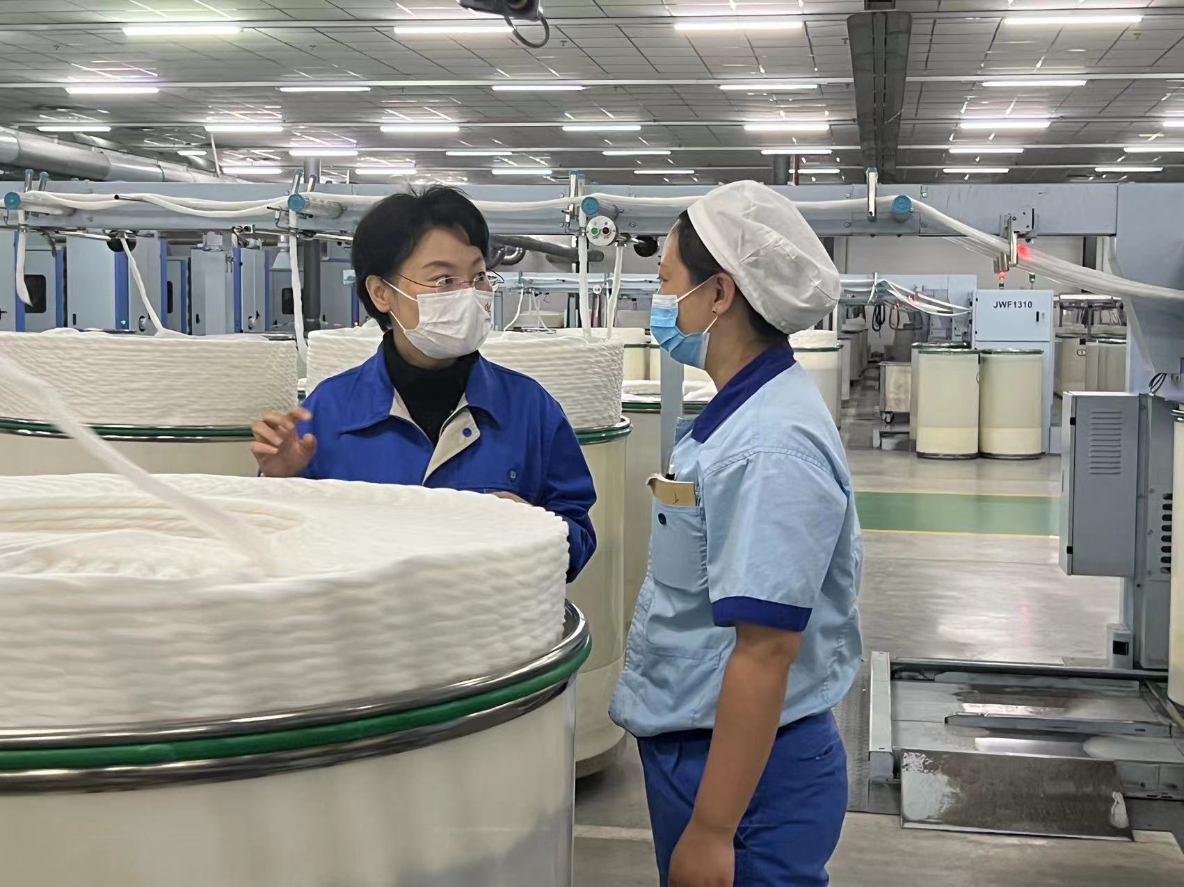 十年来,大生集团加快传统产业转型升级步伐,成为全国纺织行业智能制造的新典范。李兰女负责管理的车间目前已经基本实现了数字化生产,万锭用工减少到15人。据了解,2022年底大生集团新建的“十四五”国内第一个智慧纺纱工厂,万锭用工将降至10人以下,是李兰女管理的数字化车间的“升级版”和“加强版”。“目前机器设备全部到位,正在进行开车和试生产,力争年底全部达产达效。”李兰女介绍。