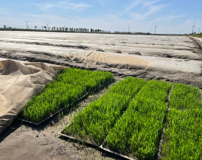 海洋院团队利用生态反哺方式,建立生物质护坡,种植田菁、碱蓬、盐蒿等耐盐植物,以减少地表水分蒸发、防止土壤表面积盐返盐。同时,通过秸秆覆盖还田、测土配方施肥,更好地提升土地综合生产能力。改良后的田地,每年开展规模化稻—麦/油轮作,连年稳产增产,成为名副其实的“吨粮田”。